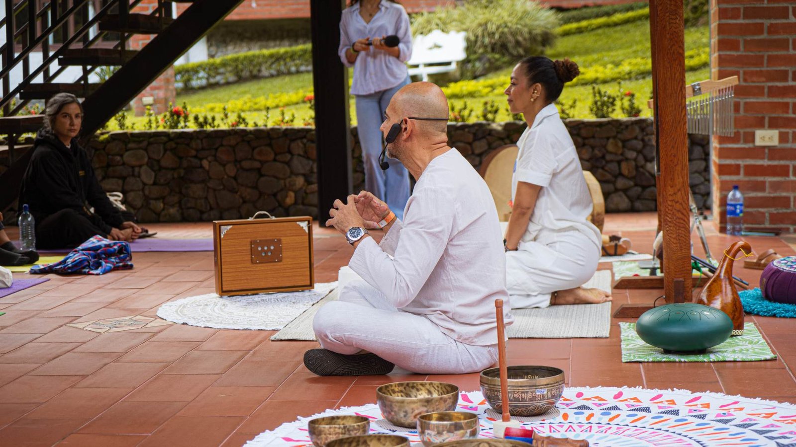 Prácticas diarias que integran sound healing, meditación, respiración consciente, yoga, entre otros.