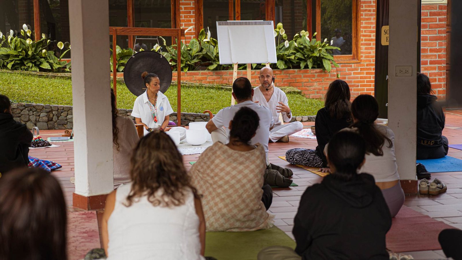 Este retiro integra terapia de sonido (sound healing), respiración consciente, yoga (Kankueb Yoga), terapia artística y medicina ancestral en un entorno seguro, íntimo y acompañado por un equipo experto.